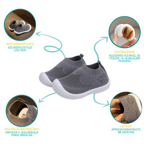 O tênis meia foi desenvolvido com tecnologia de ponta para facilitar a vida das mamães e para todos os baixinhos de 0 a 4 anos. Se você busca conforto, segurança e estilo, então este é o tênis certo para o seu baixinho