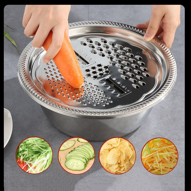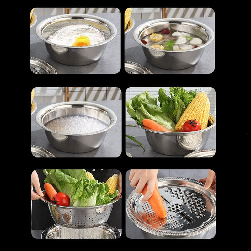 - 1 x Bowl Multifuncional 3 em 1 (1 x ralador, 1 x bandeja de drenagem, 1 x bacia de aço Inoxidável)