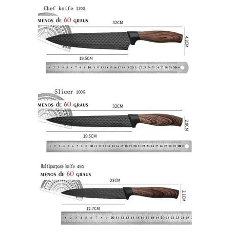 O kit faqueiro de cozinha é fabricado em aço inoxidável, sua lâmina possui ondulações que prolongam a durabilidade e resistência ao uso. O cabo revestido tem um toque Firme e encaixa perfeitamente a mão. Seu design arrojado da um toque de elegância, seja para sua cozinha ou para área de churrasco.